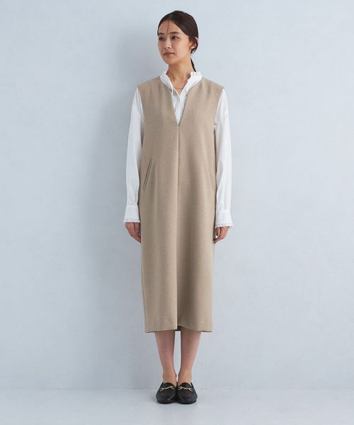 キーネックのデザインがこなれ感たっぷりのジャンパースカート。