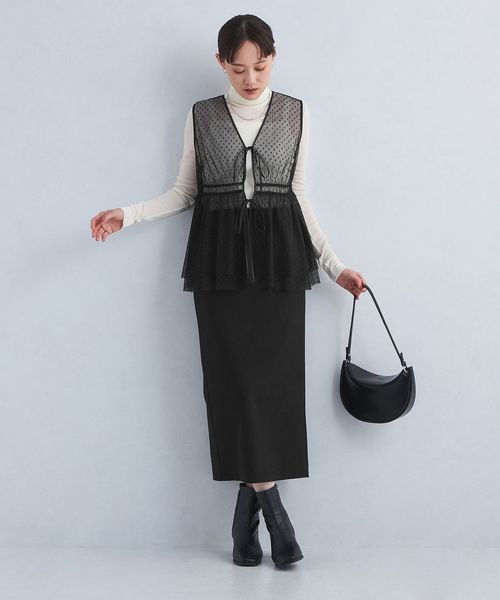 やや落ち感のある素材がフェミニンになりすぎず上品な印象で着用いただけます。
