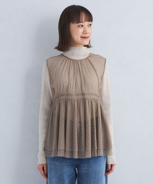 ニットやカットソーとレイヤードをすれば、こなれ感のある着こなしを演出します。
