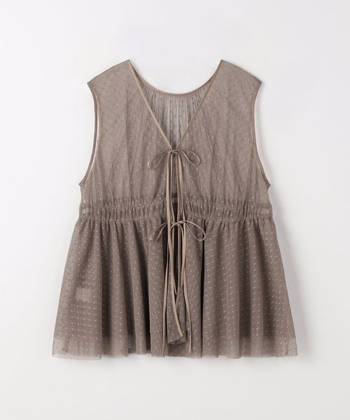 やや高めの位置にギャザーを入れ、全体をすっきりとした印象に。