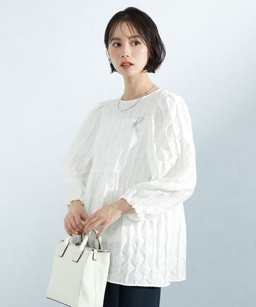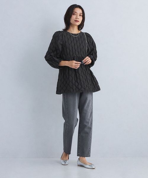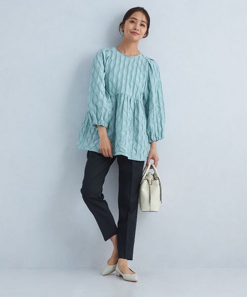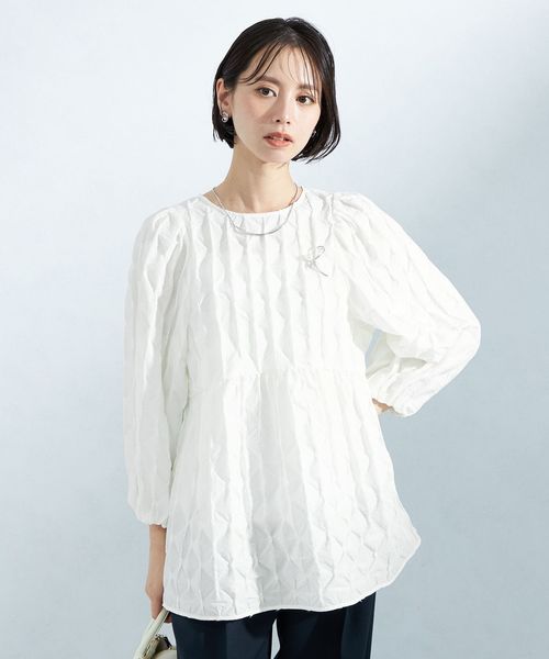 ふんわりと広がるペプラムデザインがぱっと着てきまるブラウス。