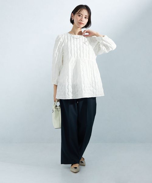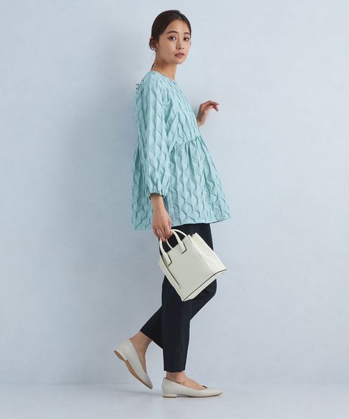 ギャザーの分量にこだわり大人な雰囲気で着られるペプラムブラウスに仕上げました。