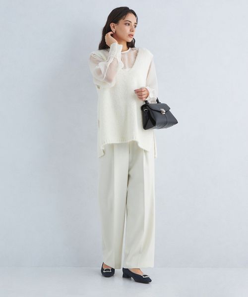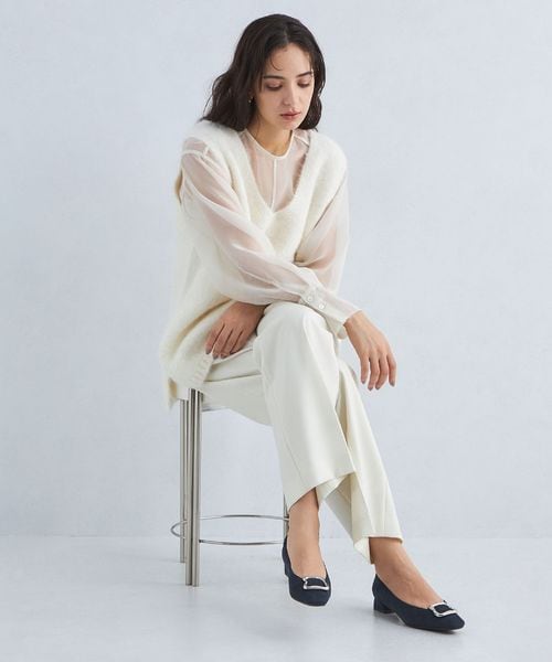 ラッフルや揺れるような柔らかな素材感のブラウス×ジャケットやジレなど、