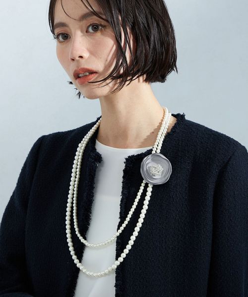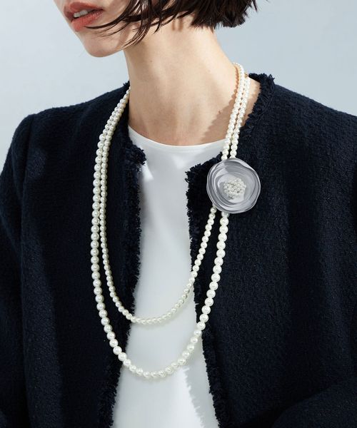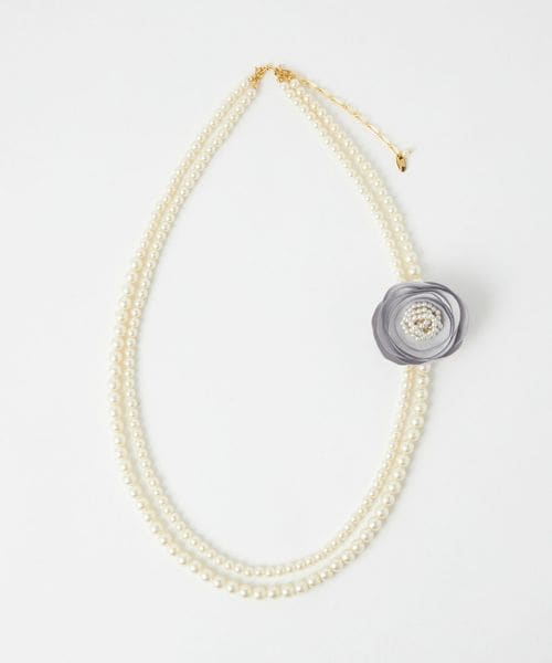 オケージョンスタイルに重宝するコサージュ付きフェイクパールネックレス。