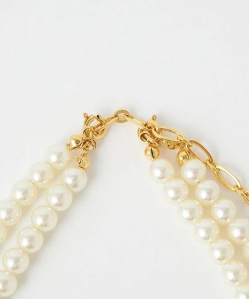 2連のフェイクパールネックレスはきれいめスタイルのアクセントに、デイリーに活躍します。