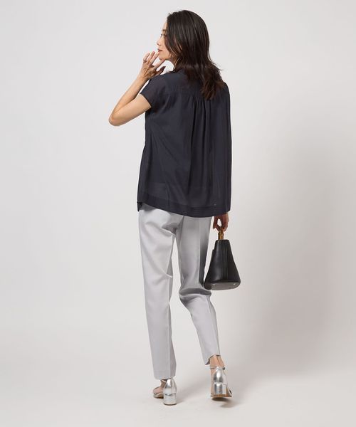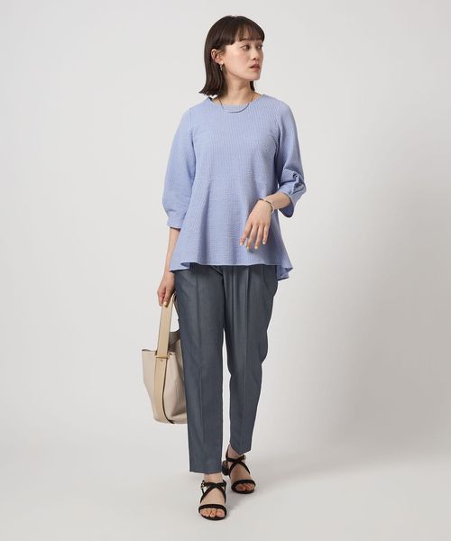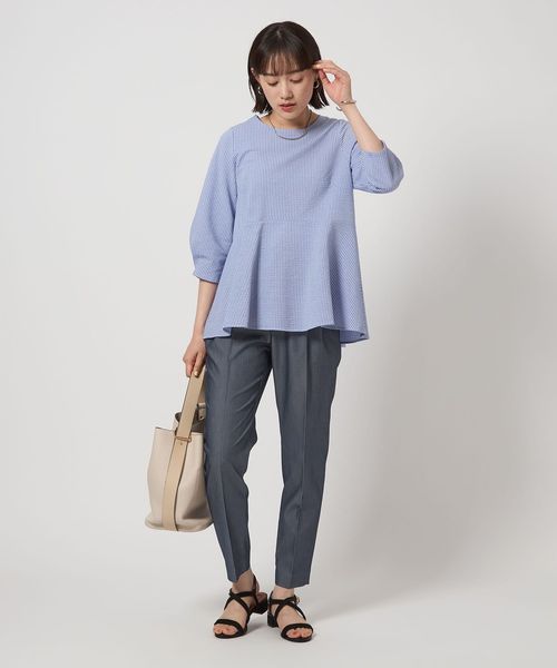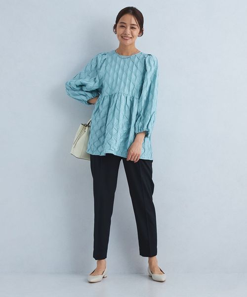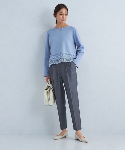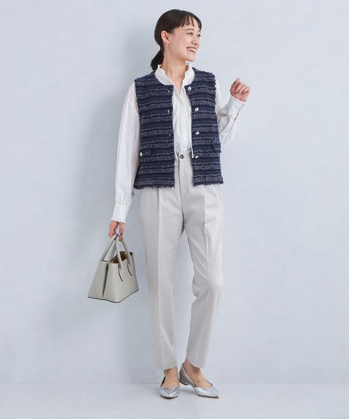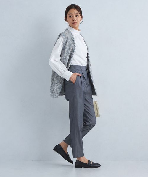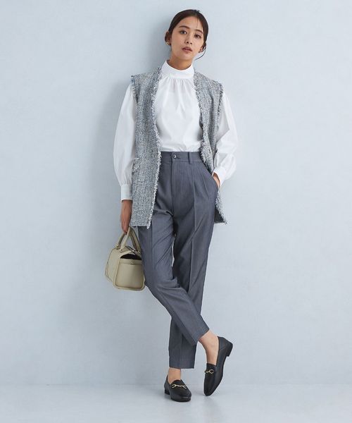 すっきりとしたシルエットなので、着丈が長めのニットやブラウスと合わせた着こなしが◎
