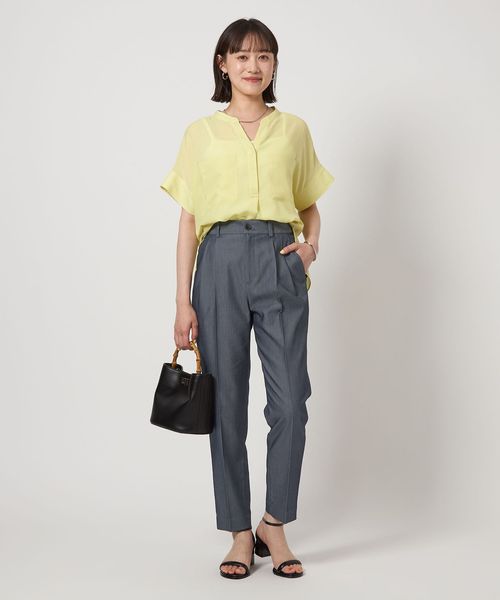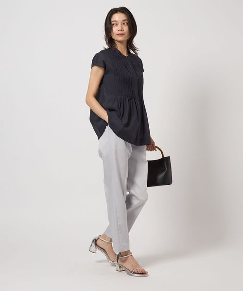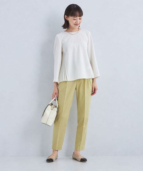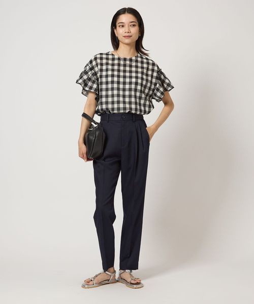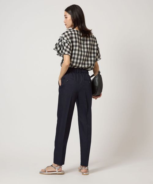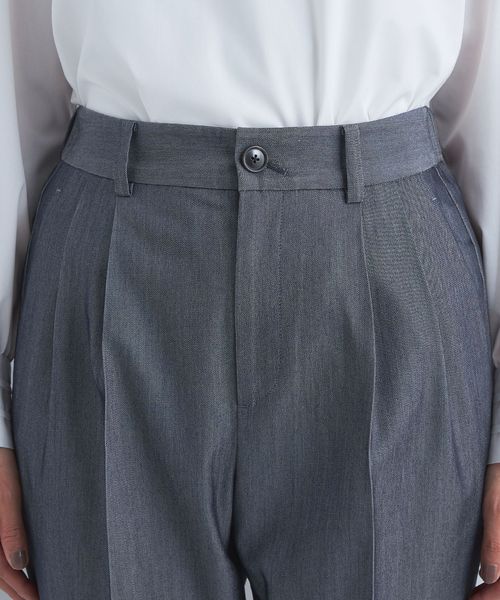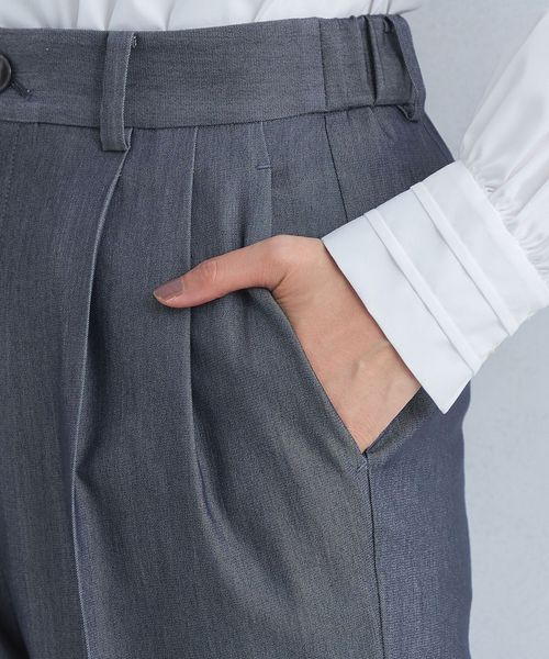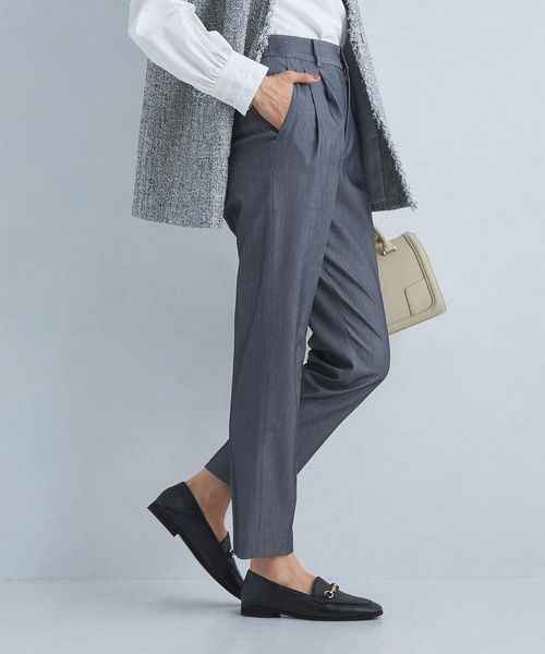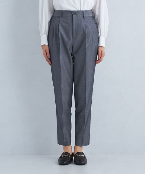 すっきりとしたシルエットが魅力のタックスリムパンツ。