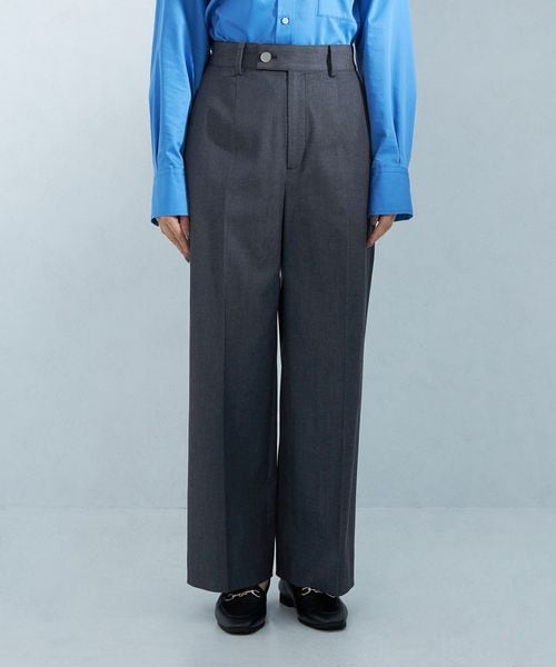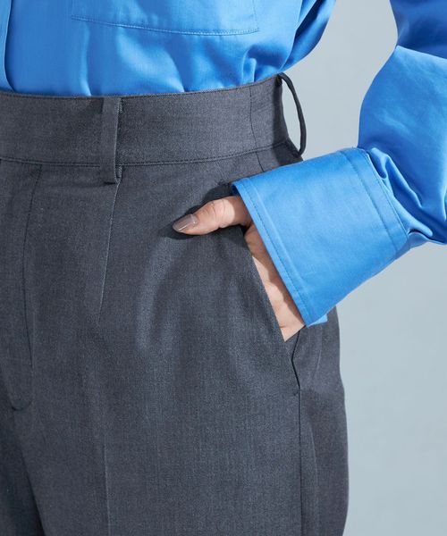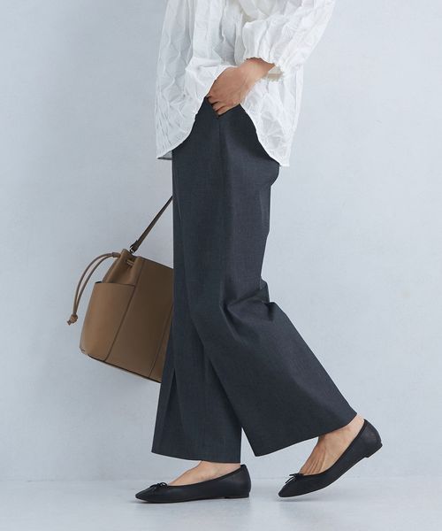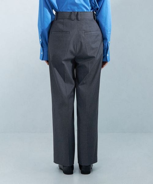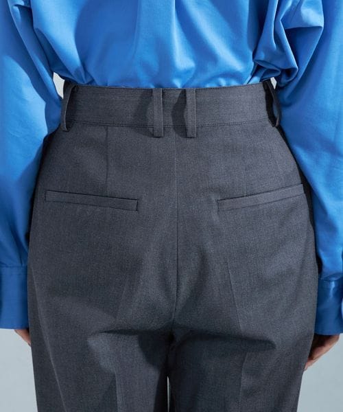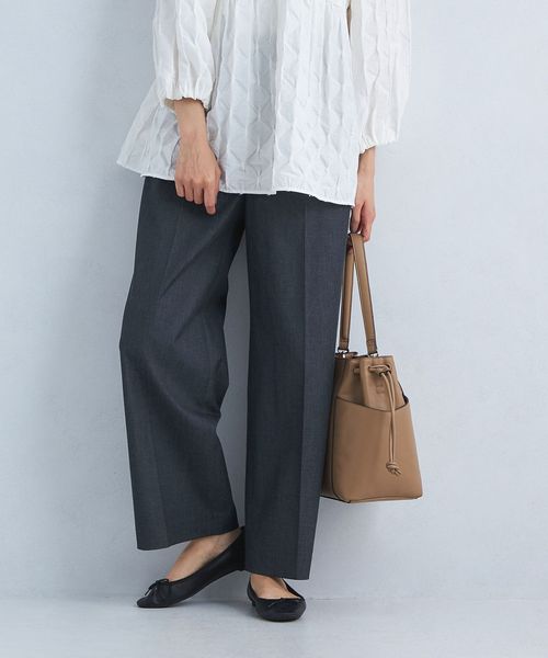 やや高めに設定したウエスト位置やセンタープレスが、全体をすっきりとした印象に見せてくれます。