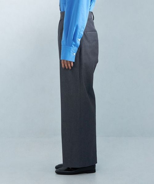 ゆとりのあるシルエットながら、ノータックのデザインですっきりと着用いただける一着。
