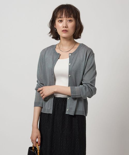 きらっと光るラメが着こなしのアクセントになるニットカーディガン。