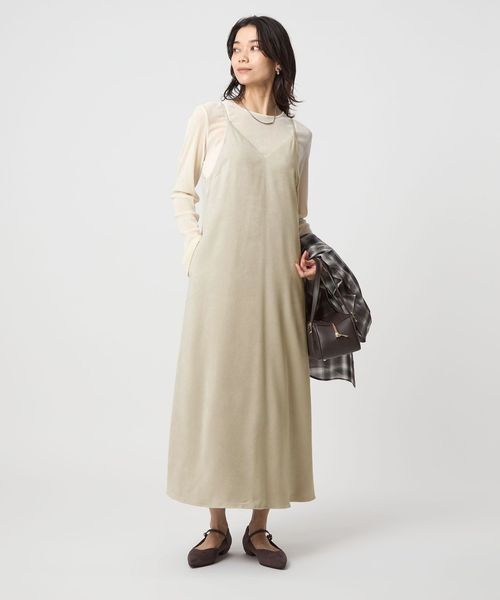 シーズンムードを高めるスウェードライクな素材感が魅力のキャミワンピース