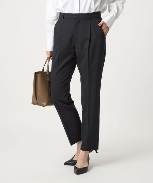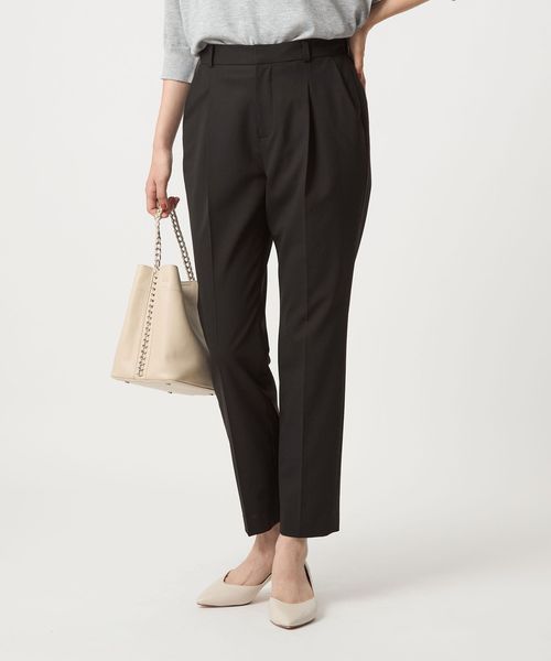 ぴったりしすぎず、ゆるすぎないシルエットが魅力のタックテーパードパンツ。
