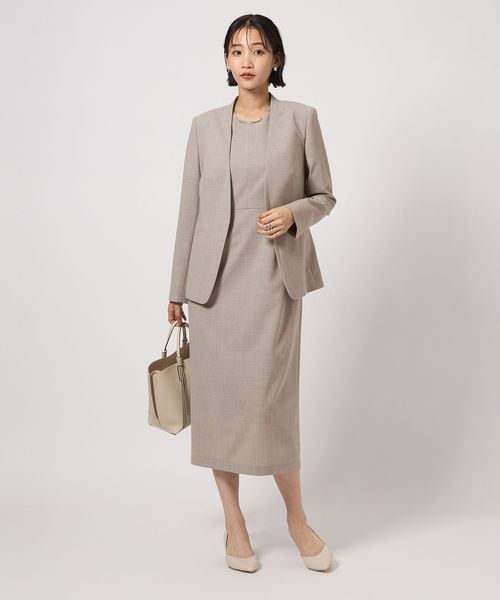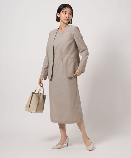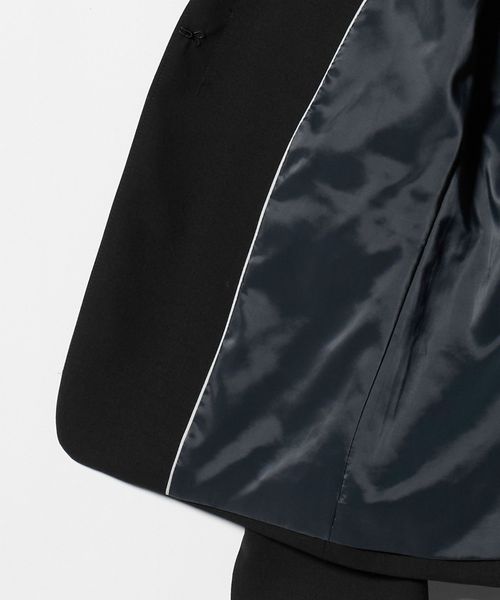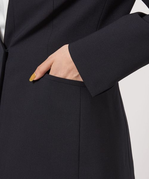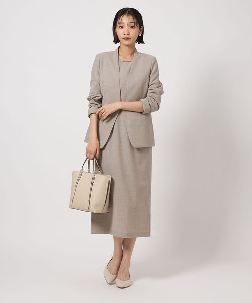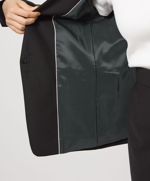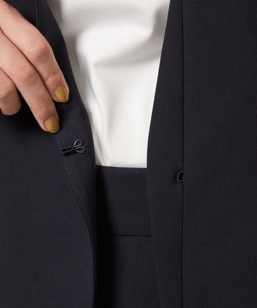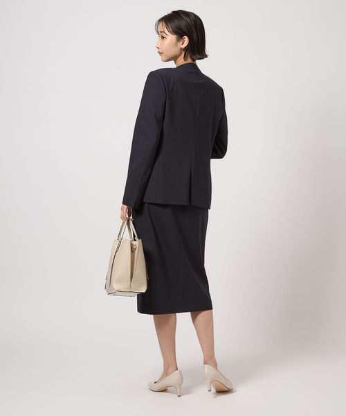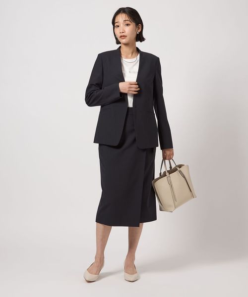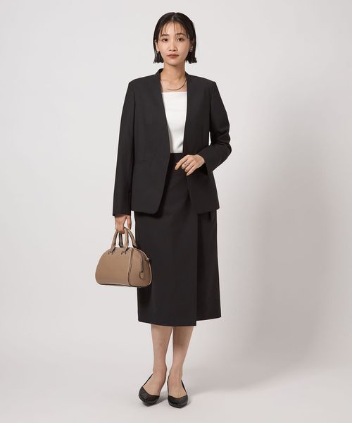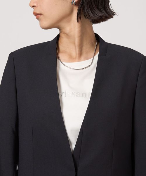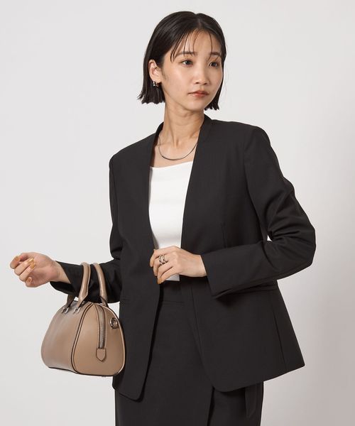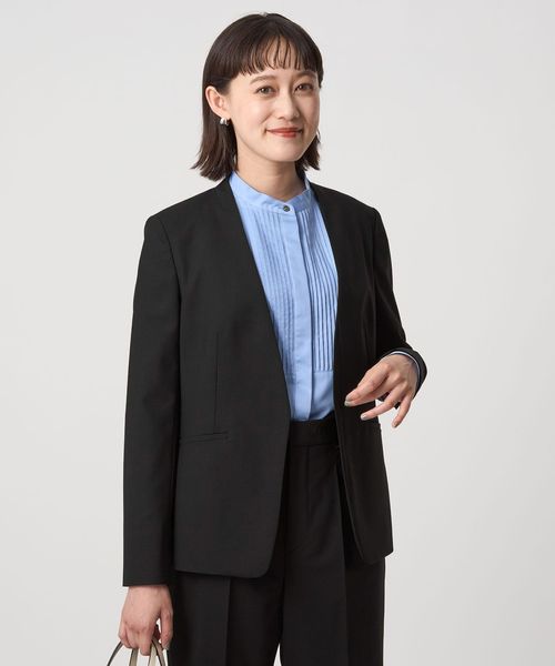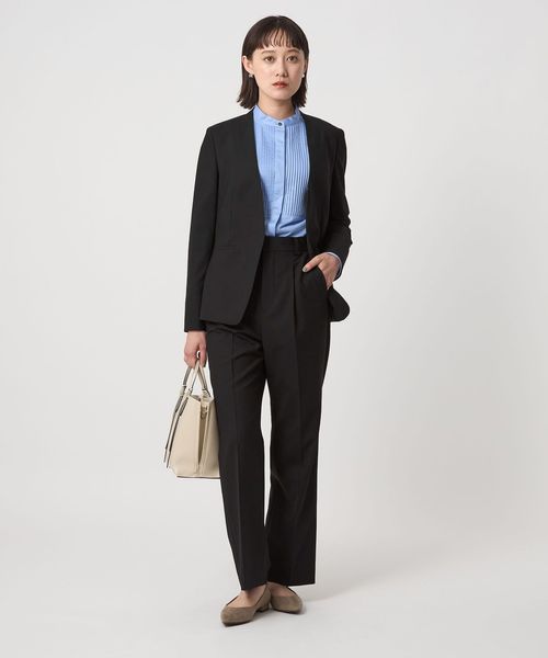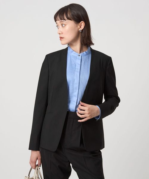 ノーラペルデザインなので、ハイネックやボウタイブラウスとの合わせも◎