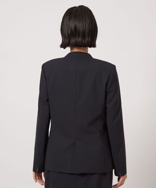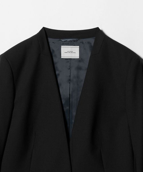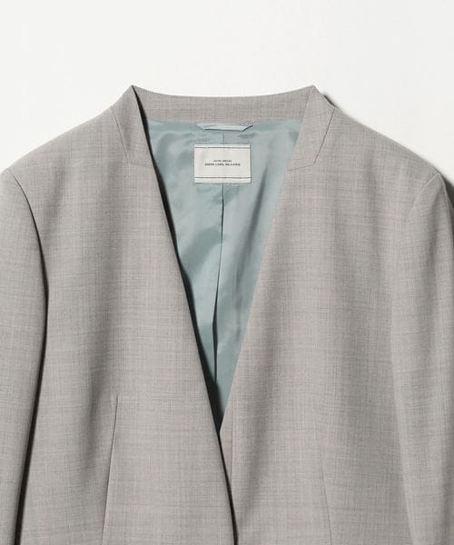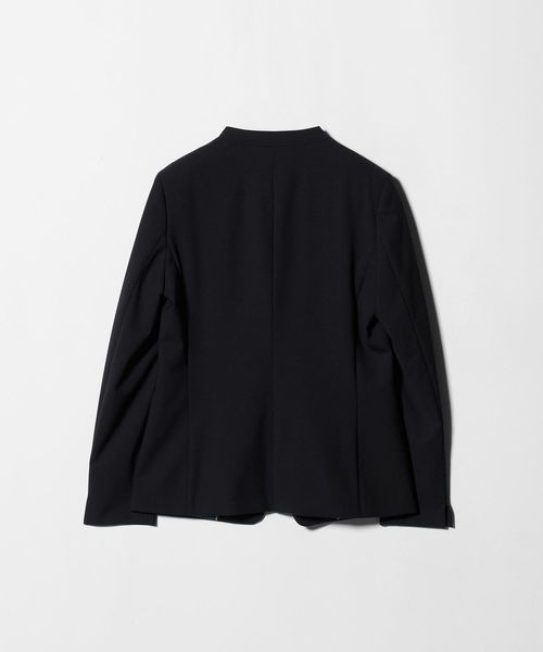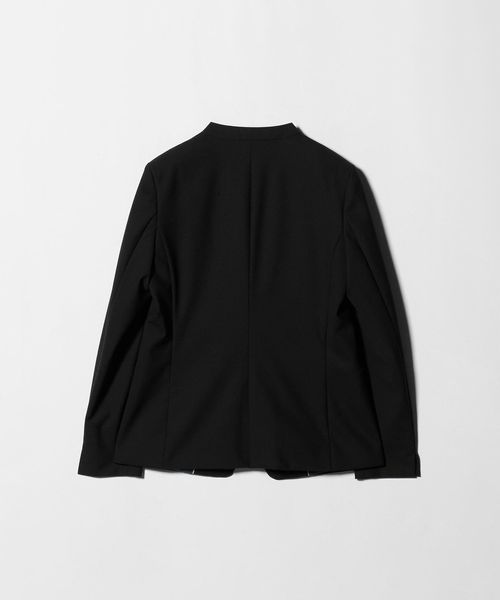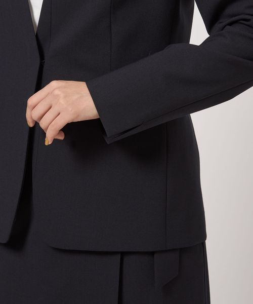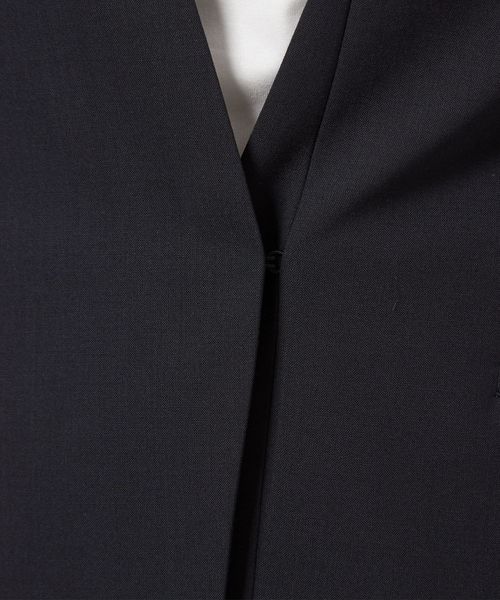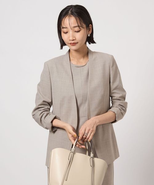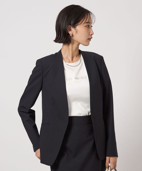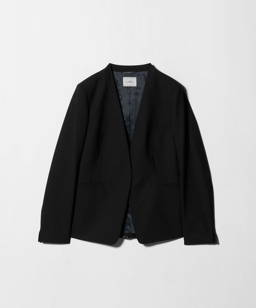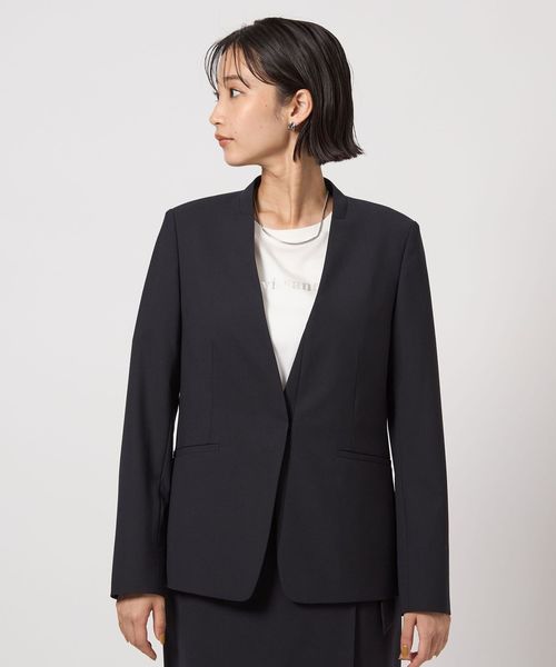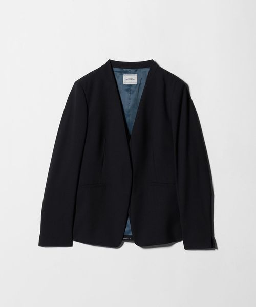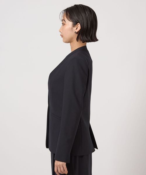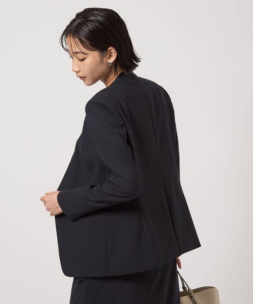 装飾のないすっきりとしたデザインが着回しに便利なノーラペルジャケット。