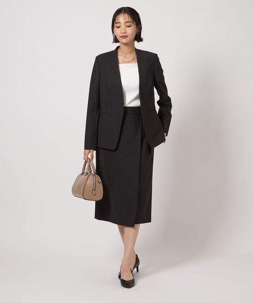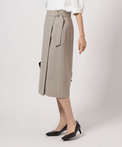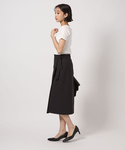 ラップスカート風のデザインで、シンプルながらもデザイン性のある一着です。