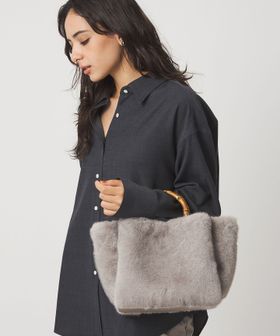 2WAY バンブーハンドル フェイクファー トートバッグ