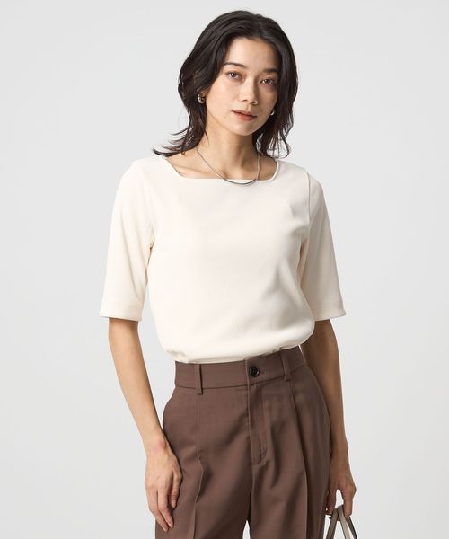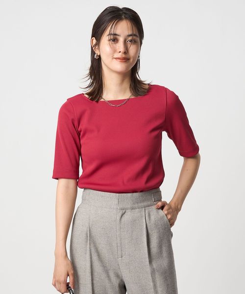 程よくコンパクトなサイジングが上品な印象で着用いただけるニットライクなカットソー。