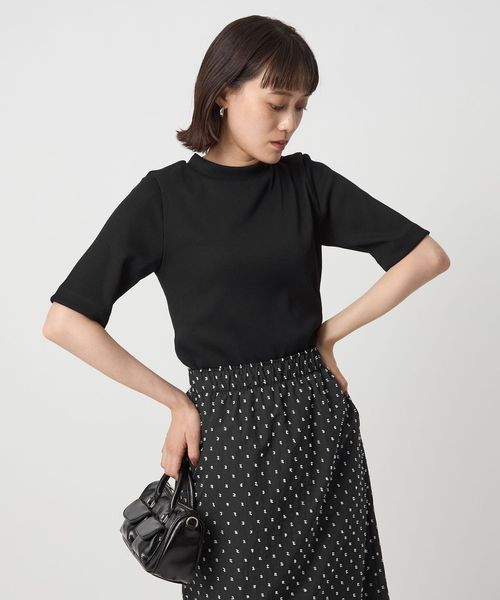 きちんと見えするモックネックデザインでお作りしたニットライクカットソー。