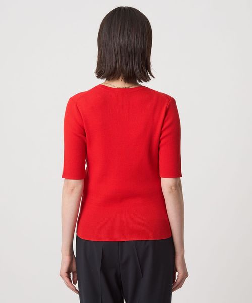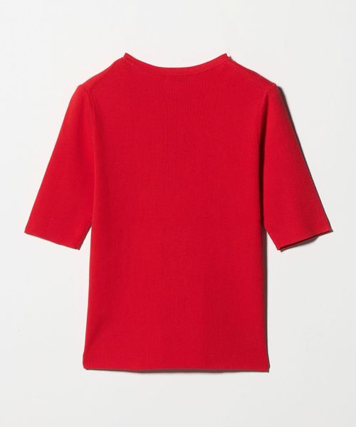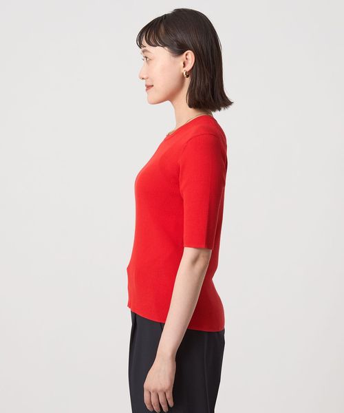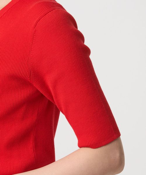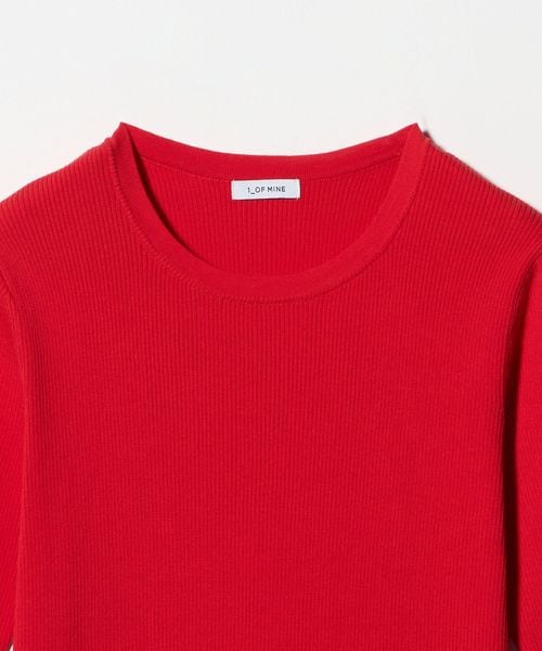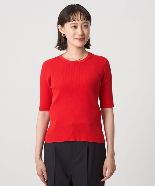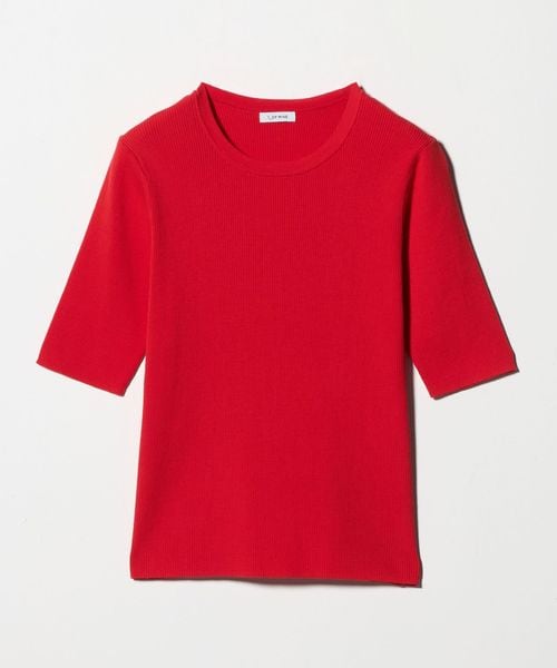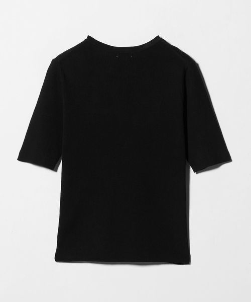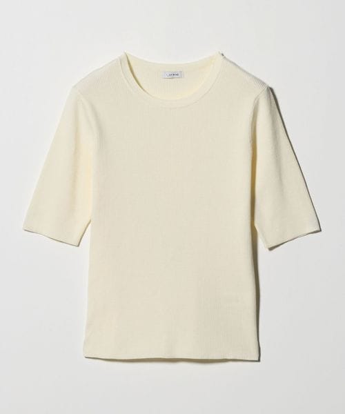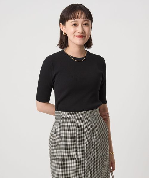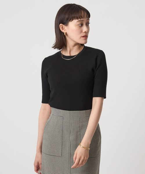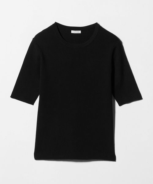 <1_OF MINE>リブ クルーネック 5分袖 ニット プルオーバー