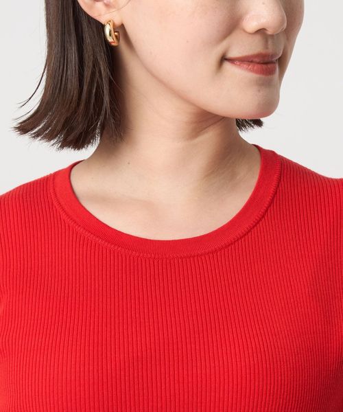 シンプルなデザインで、着回しのきく万能リブニット。