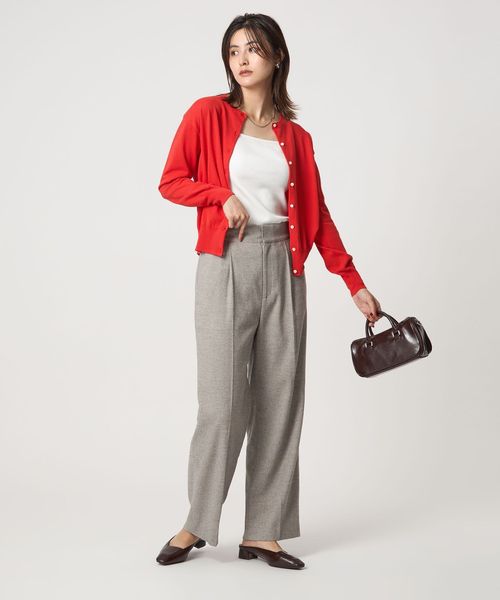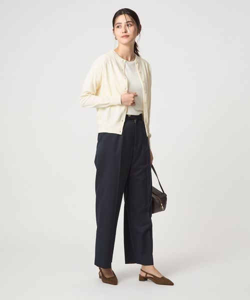 カーディガンとしてはもちろん、ボタンを閉じてプルオーバ―として着ていただくのもおすすめです。