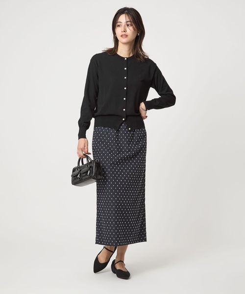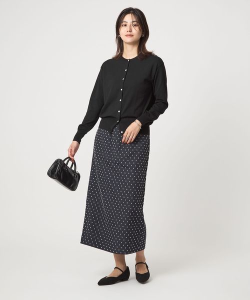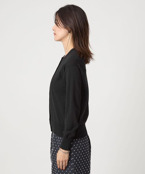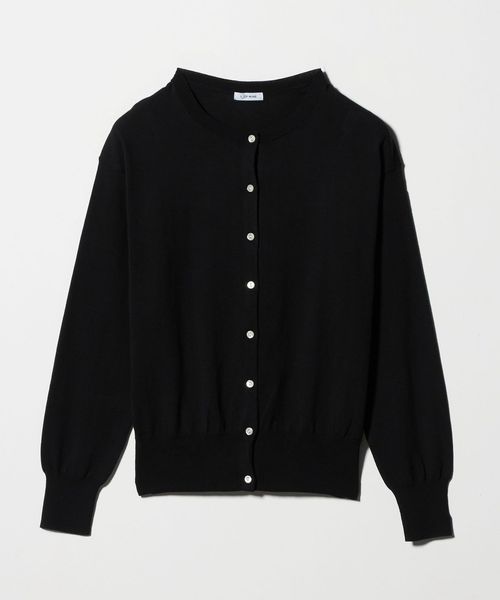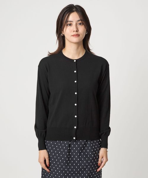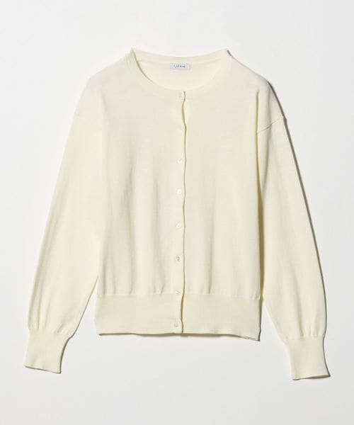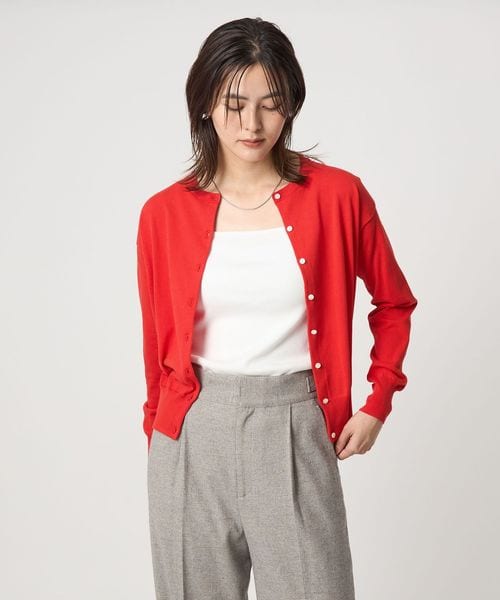 シンプルなデザインで着回しのきくクルーネックカーディガン。