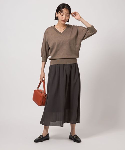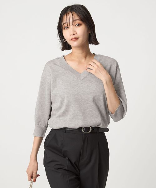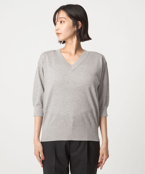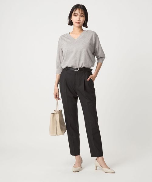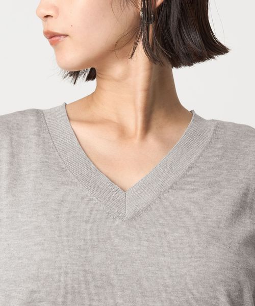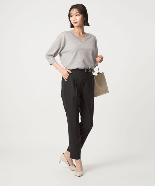 すっきりとしたVネックがこなれ感をプラスします。