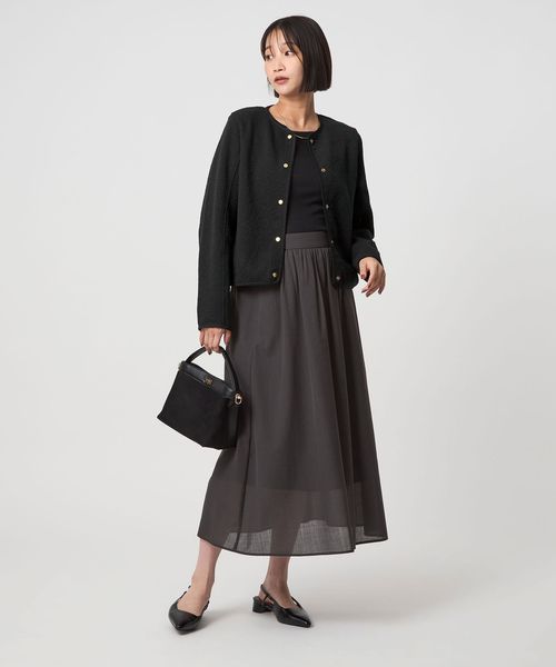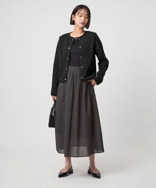 ワイドパンツやフレアスカートで合わせるとバランスよく着用いただけます。