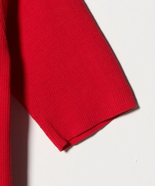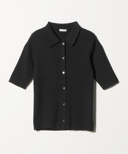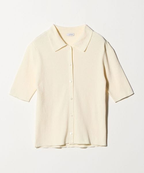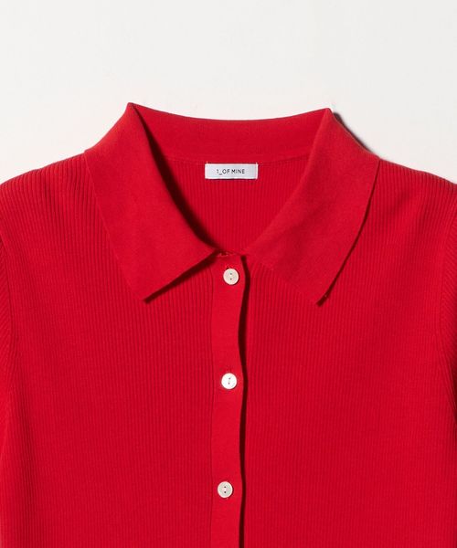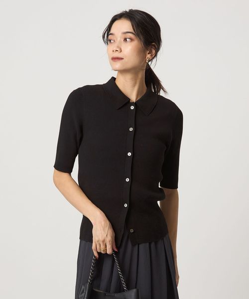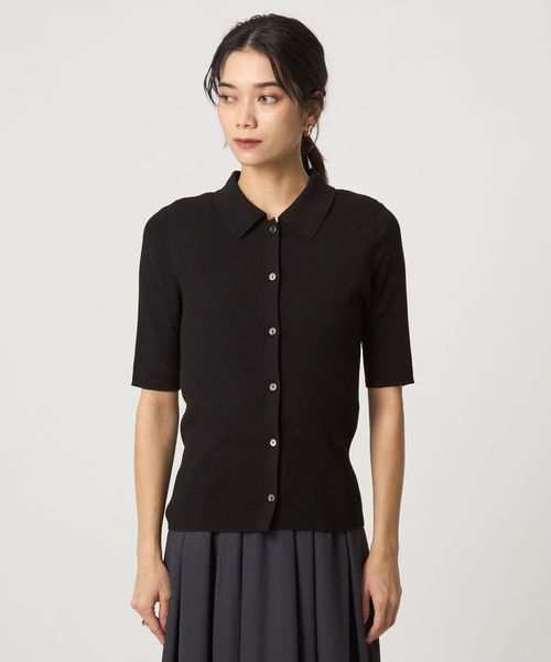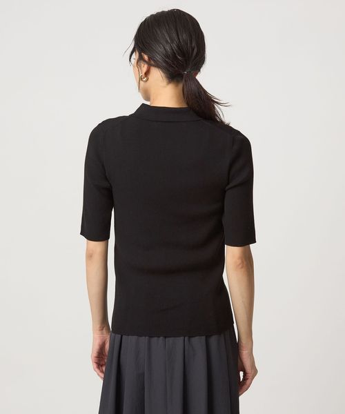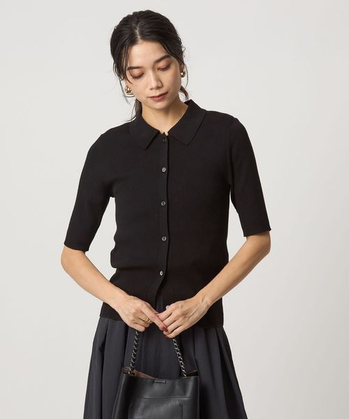 <1_OF MINE>襟付き リブ 5分袖 ニット マシンウォッシャブル