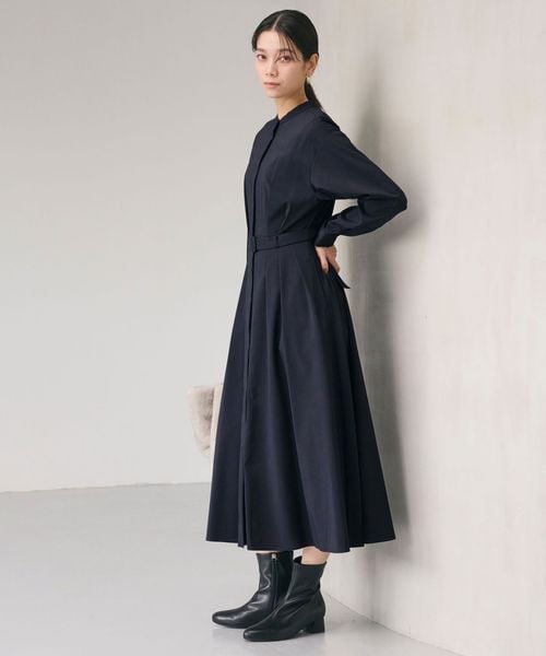 ウエスト ベルト ロングスリーブ ワンピース マシンウォッシャブル