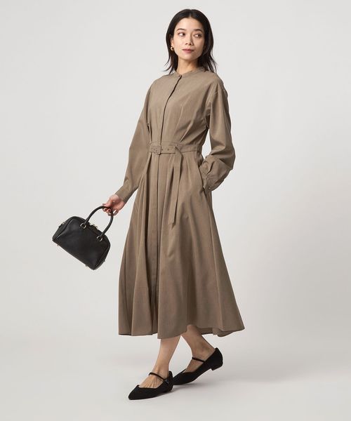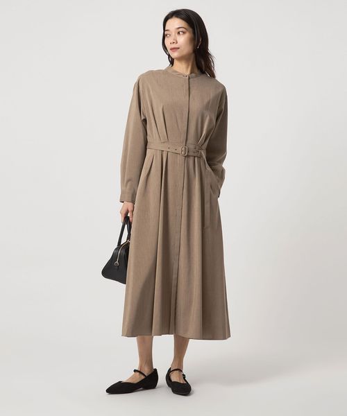 共布のベルトをつけた状態はもちろん、外した際もウエストが決まるデザインもポイント。