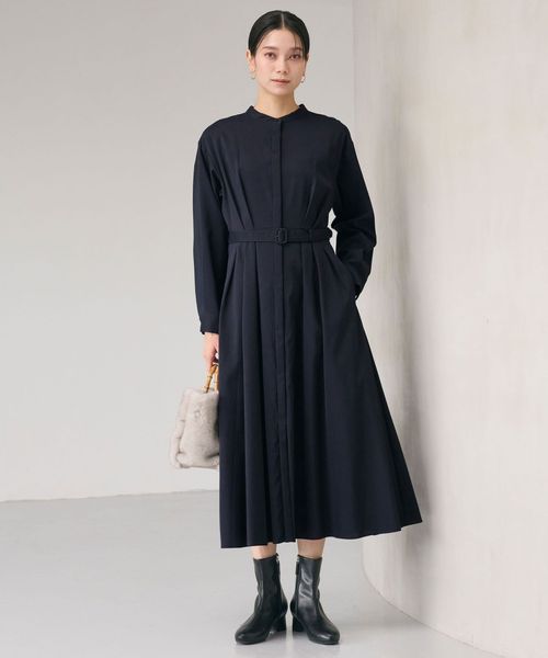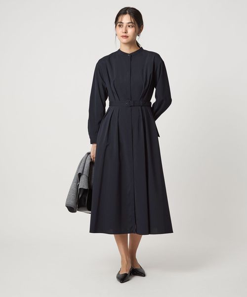 ウエスト ベルト ロングスリーブ ワンピース マシンウォッシャブル