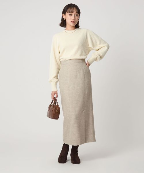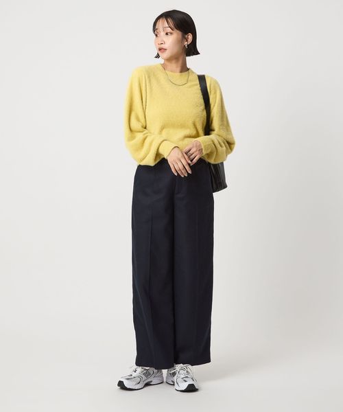 ふんわり毛足感のある素材がシーズンムードたっぷりのニット。