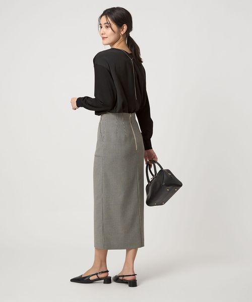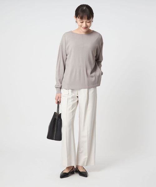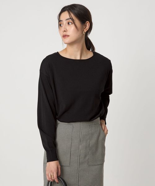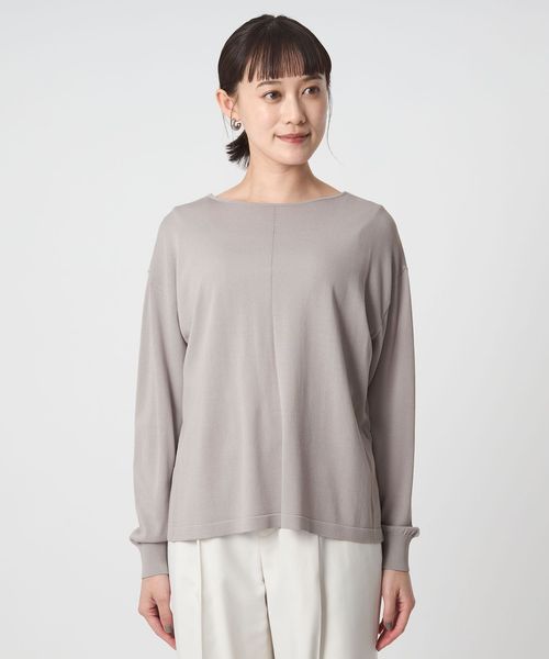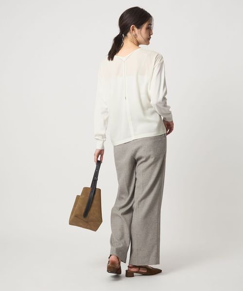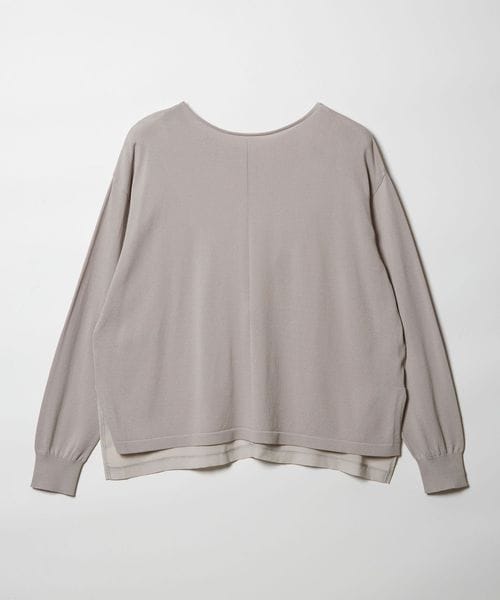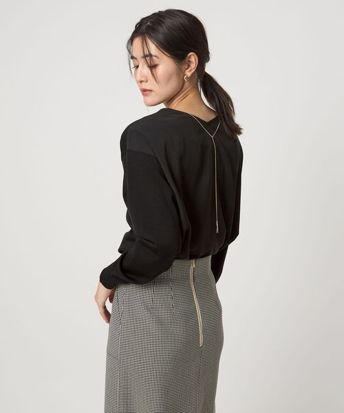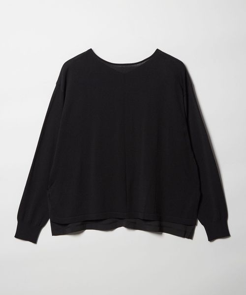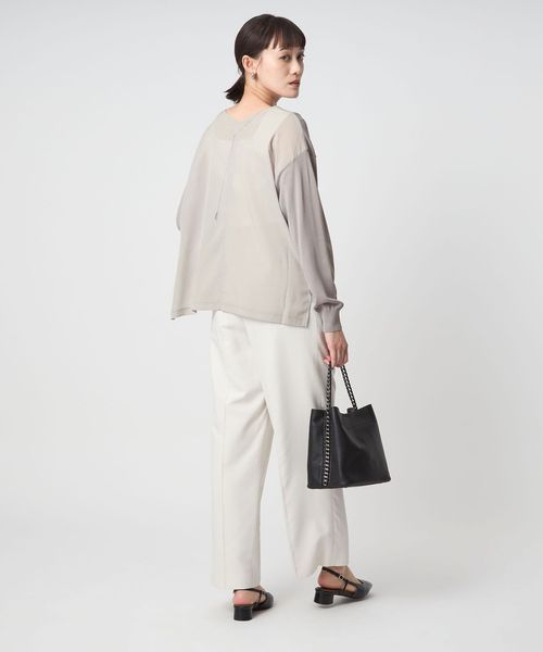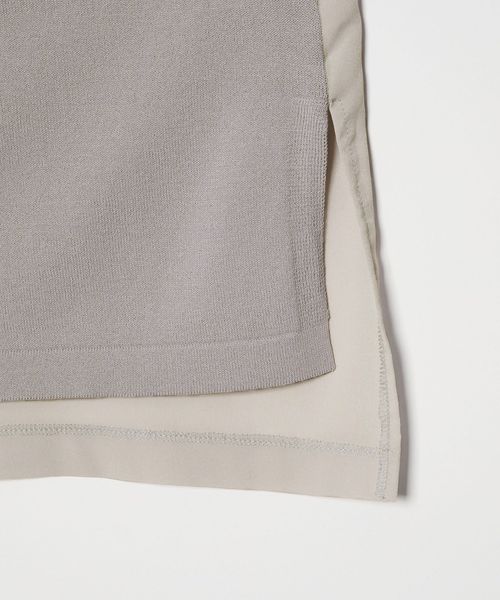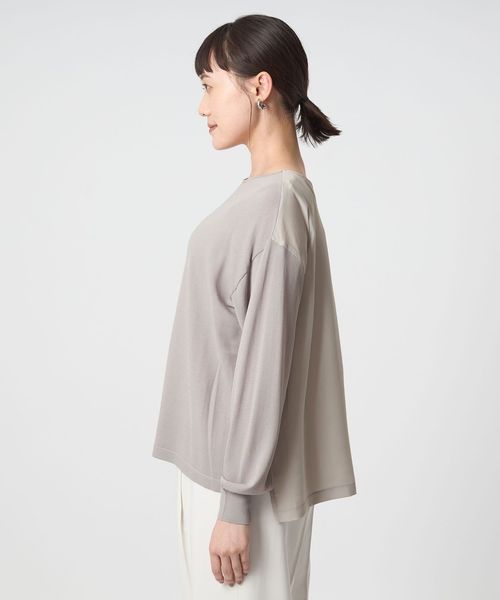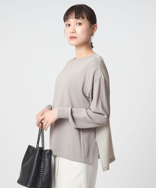 前身頃はニット素材、後ろ身頃にはシアー感のあるさらりとしたタッチの素材をドッキングしたデザイン。
