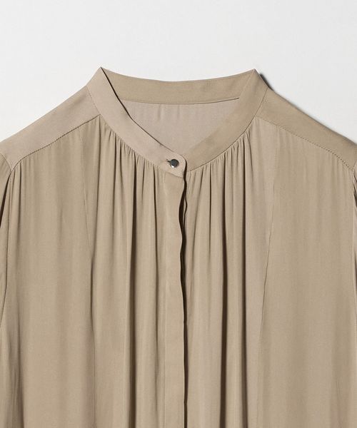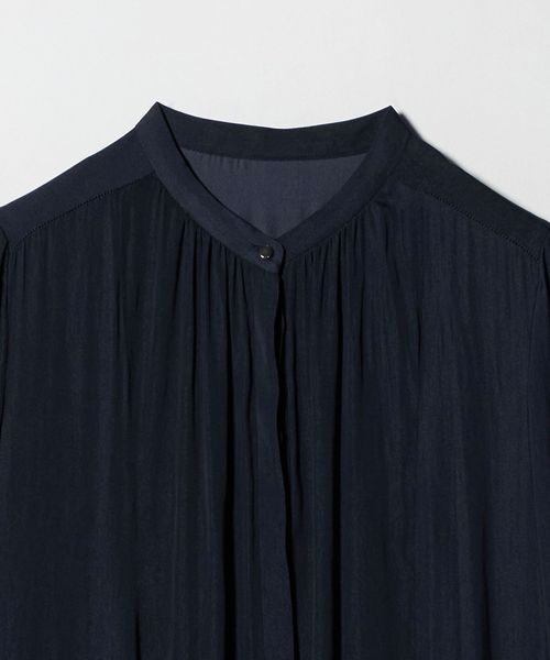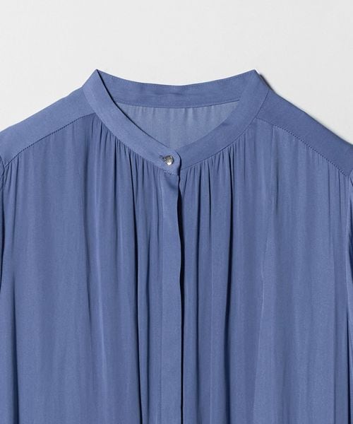 フロントに入ったギャザーが一枚で華やかな着こなしを演出します。