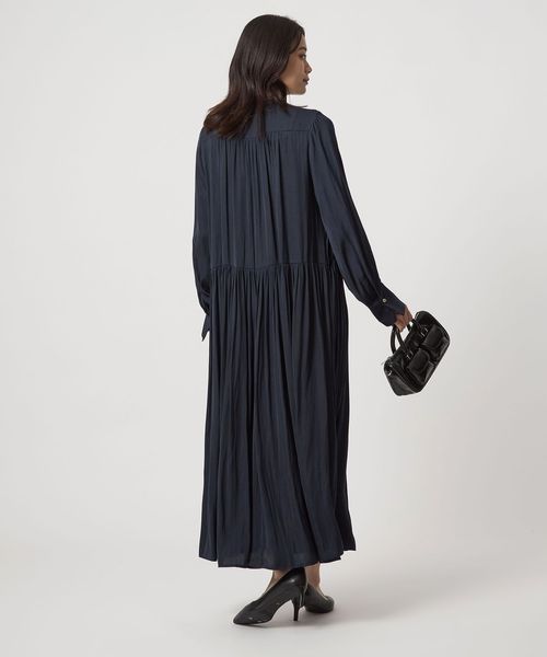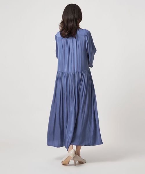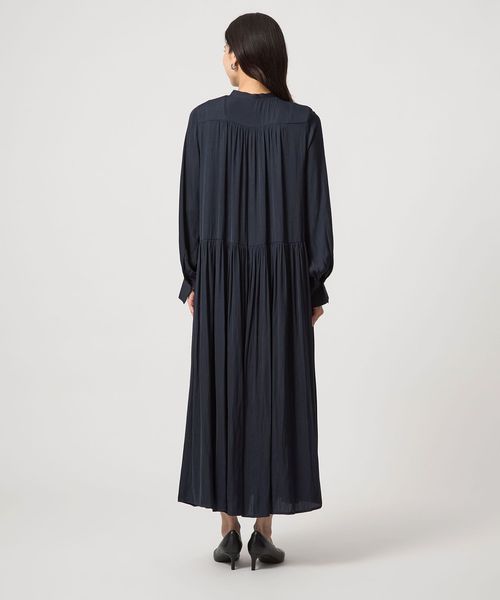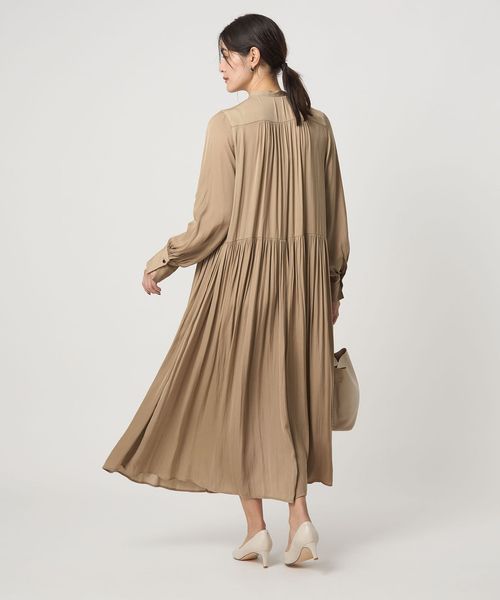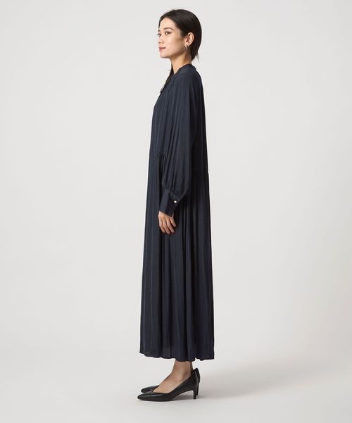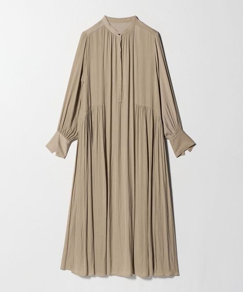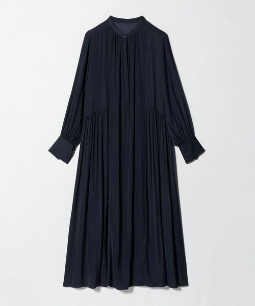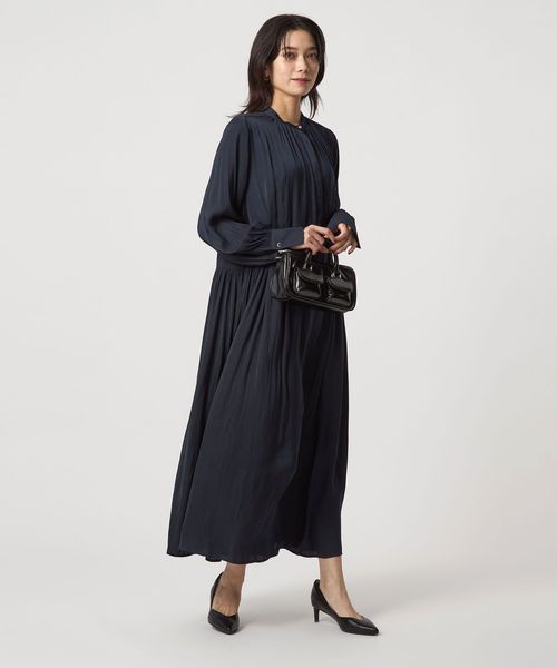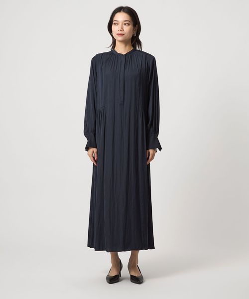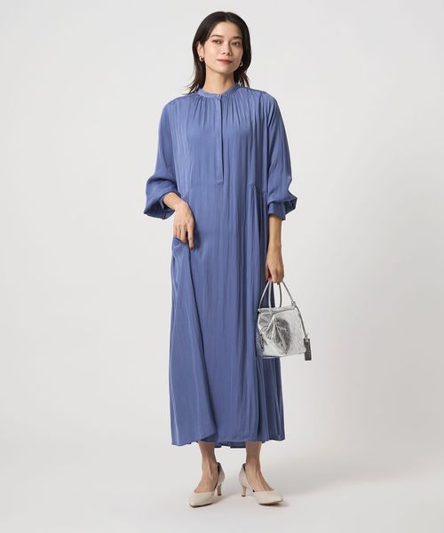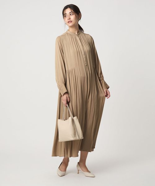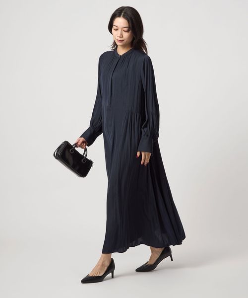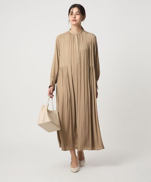 ノーカラーのデザインがすっきりと大人な雰囲気のワンピース。