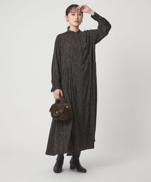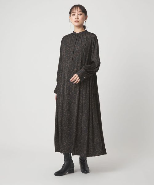 ノーカラーのデザインがすっきりと大人な雰囲気のワンピース。