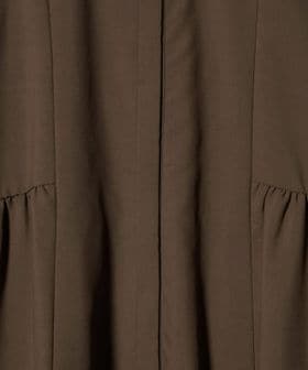 フェミニンになりすぎないよう、スタンドカラ―のデザインで抜け感をプラスしました。