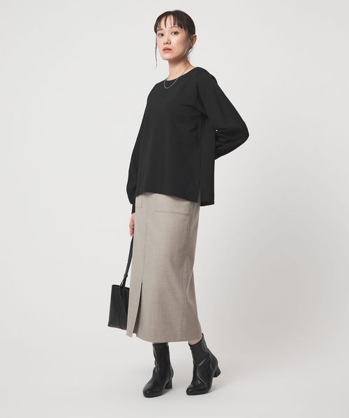 サイドにスリットが入っているので、合わせるボトムスを選ばずに着用いただけるのも嬉しいポイントです。