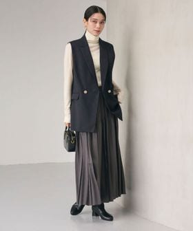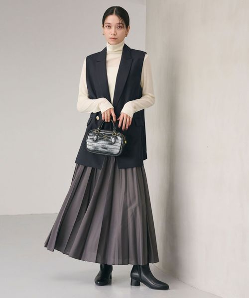 タートルネックのニットやカーディガンなど、コンパクトめのトップス合わせがおすすめです。