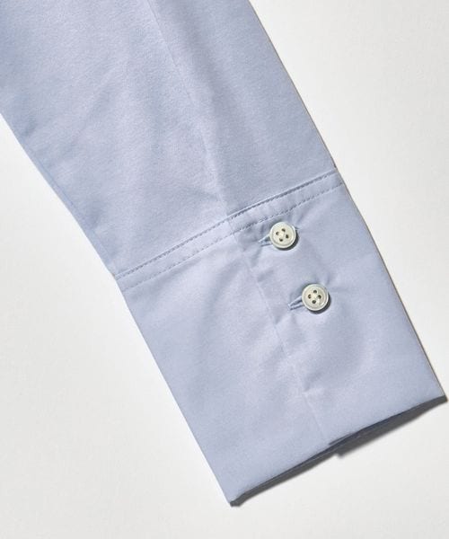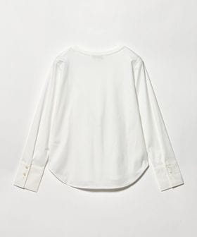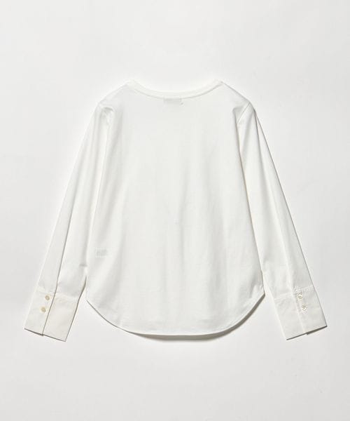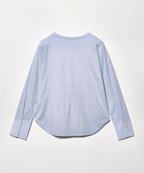 さらりとしたタッチで上品な印象のカットソー素材に、シャツ素材のカフスをドッキングしたデザイン。