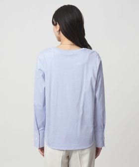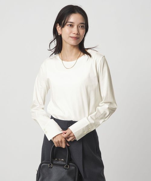 さらりとしたタッチで上品な印象のカットソー素材に、シャツ素材のカフスをドッキングしたデザイン。