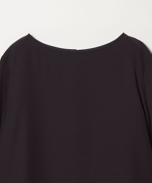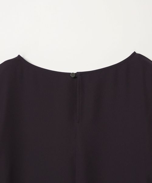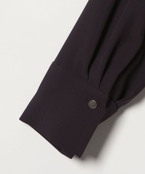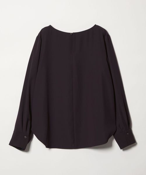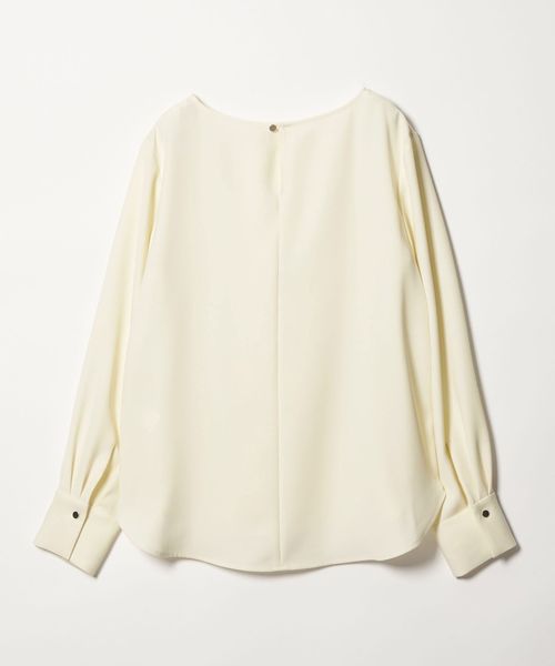 シンプルながらも、袖口のタックがほどよい立体感を演出するクルーネックブラウス。