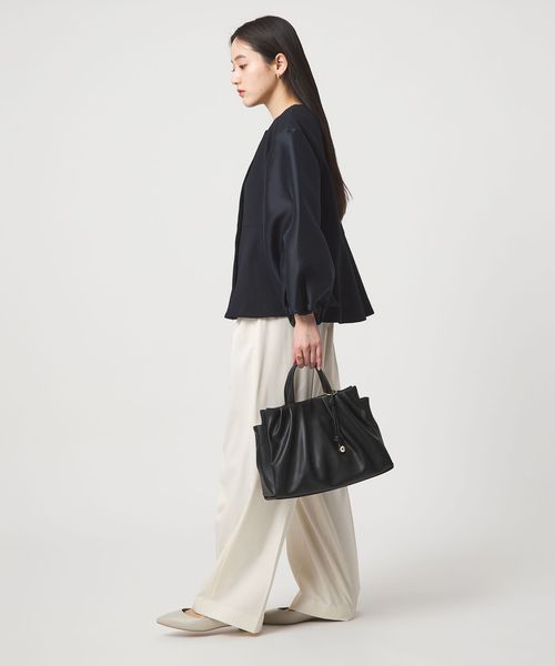 タックを入れてふんわりとしたフォルムに仕上げたトートバッグ。