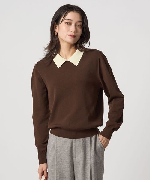 お仕事からデイリーまで幅広いシーンで着用いただける襟付きニット。