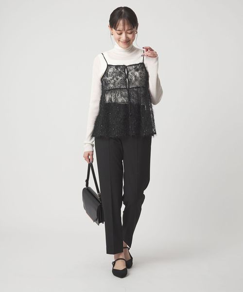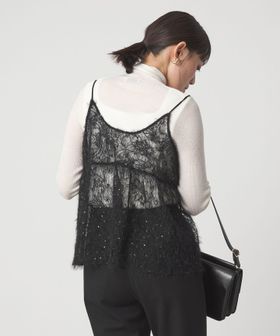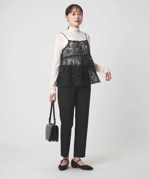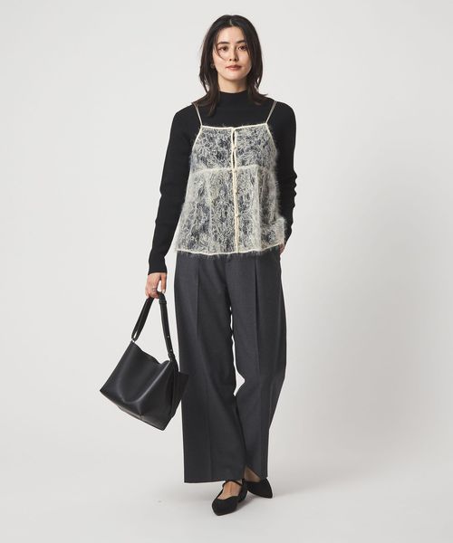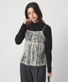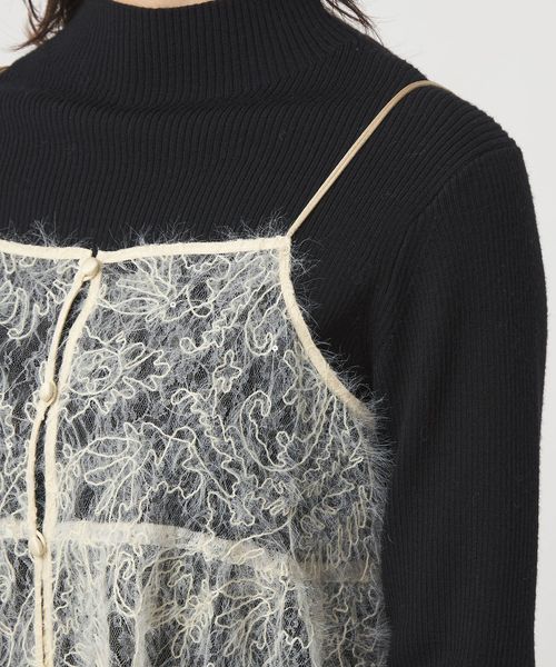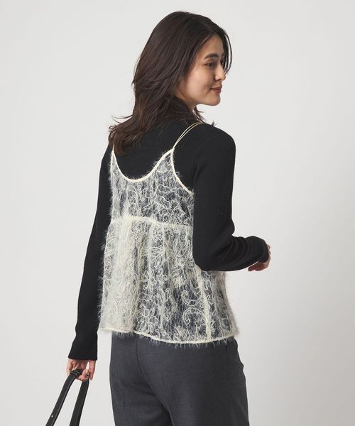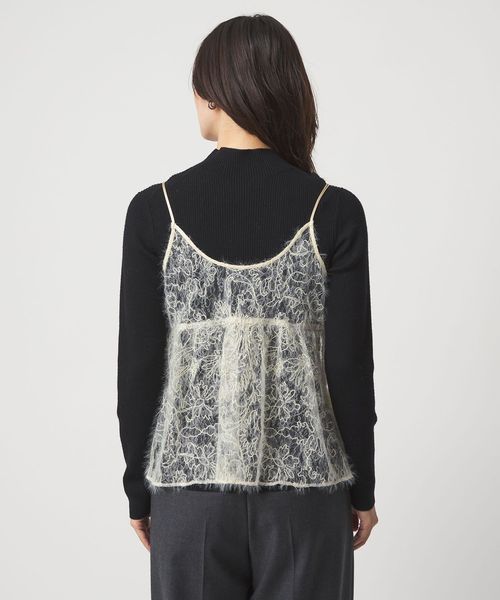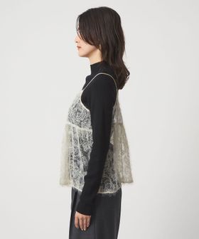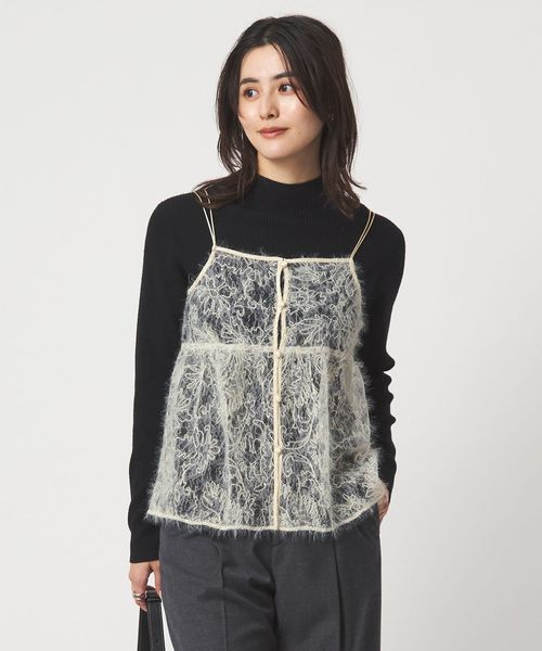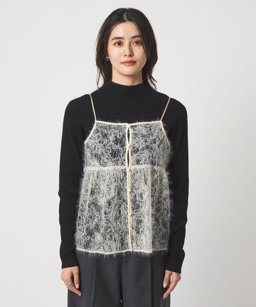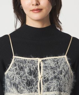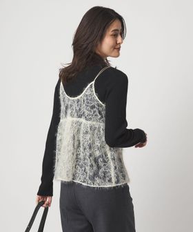レースとふんわり毛足感のある糸をMIXさせた素材が大人フェミニンな雰囲気。
