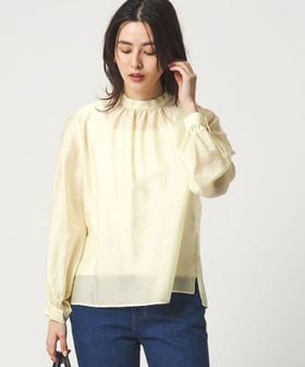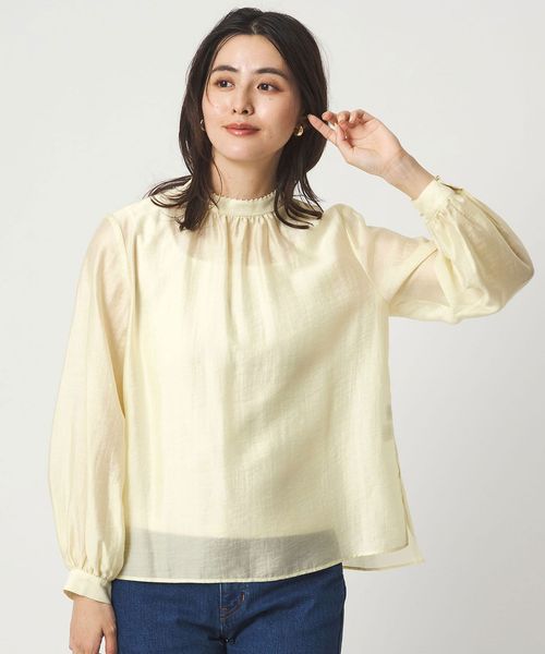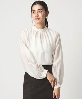 フェイクパール×スタンドネックデザインがポイントのブラウス。