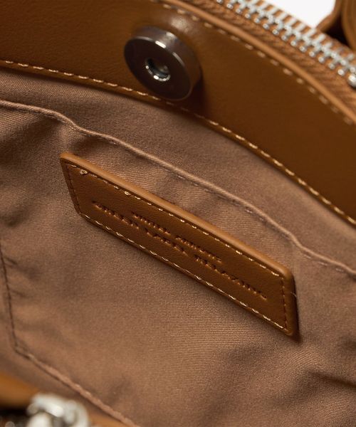 幅のあるフラップ付きでバッグの中が隠せるのもポイント。