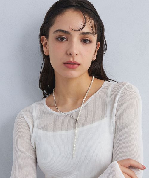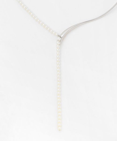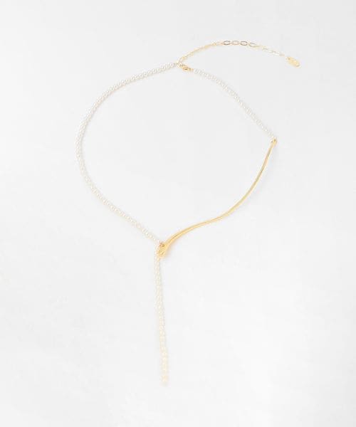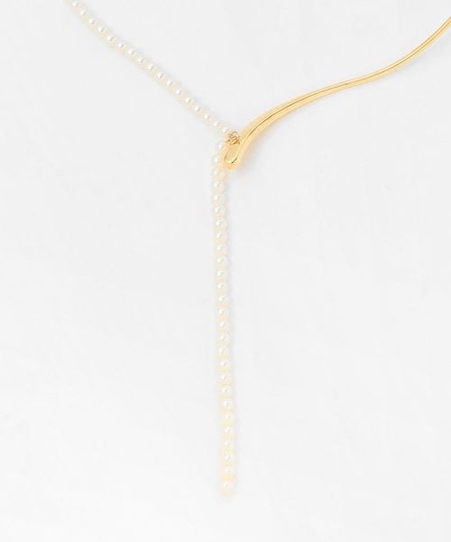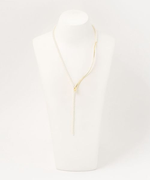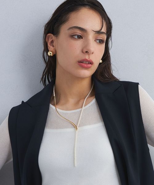 あまり見ない新鮮なフォルムが胸元で華やかな存在感を発揮してくれるネックレス。