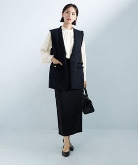 首回りや袖口にギャザーを施し、ふんわりとさせたシルエットがポイント。